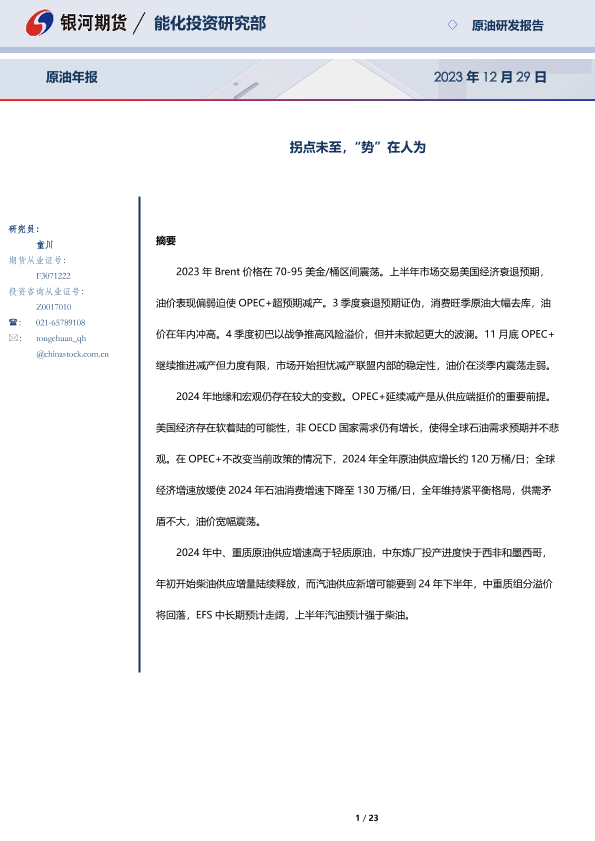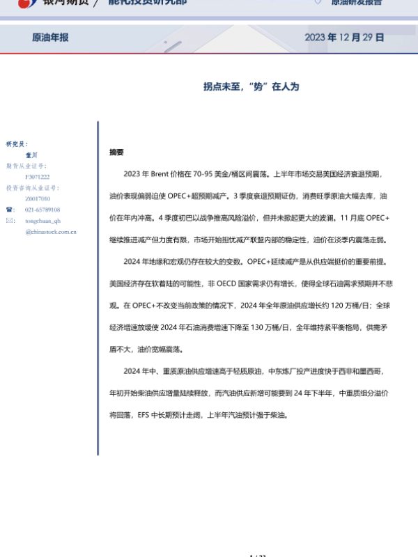 【银河期货】【20231229】原油年报:拐点未至,“势”在人为-23页