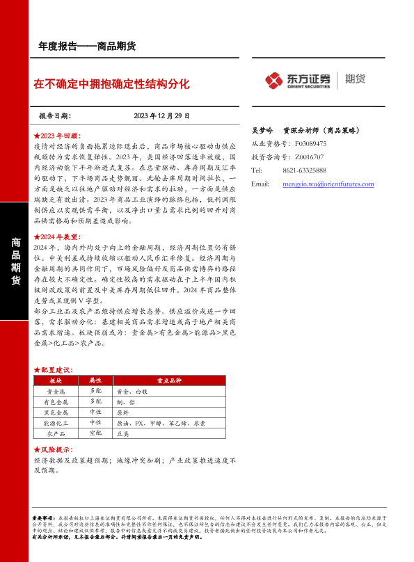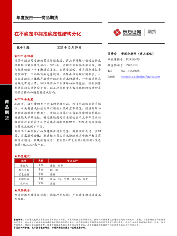 【东证期货】【20231229】商品期货年度报告:在不确定中拥抱确定性结构分化-23页