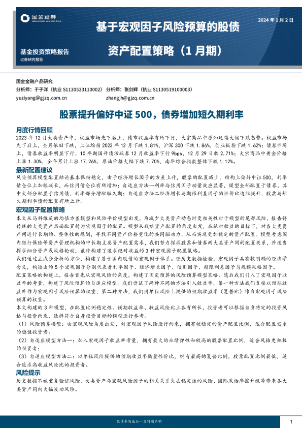 【国金证券】【20240102】基于宏观因子风险预算的股债资产配置策略(1月期):股票提升偏好中证500,债券增加短久期利率-12页