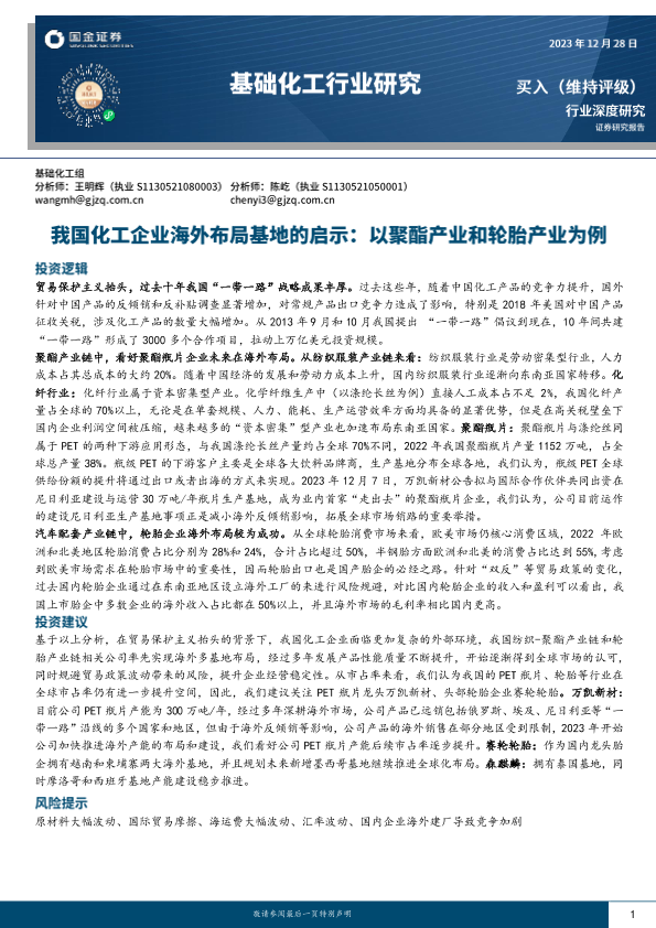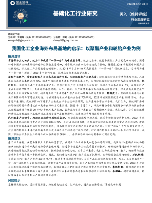 【国金证券】【20231228】基础化工行业研究:我国化工企业海外布局基地的启示:以聚酯产业和轮胎产业为例-46页