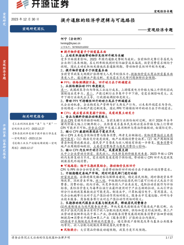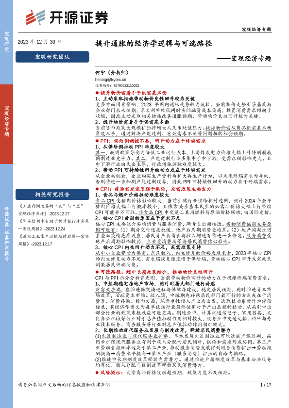 【开源证券】【20231230】提升通胀的经济学逻辑与可选路径-17页