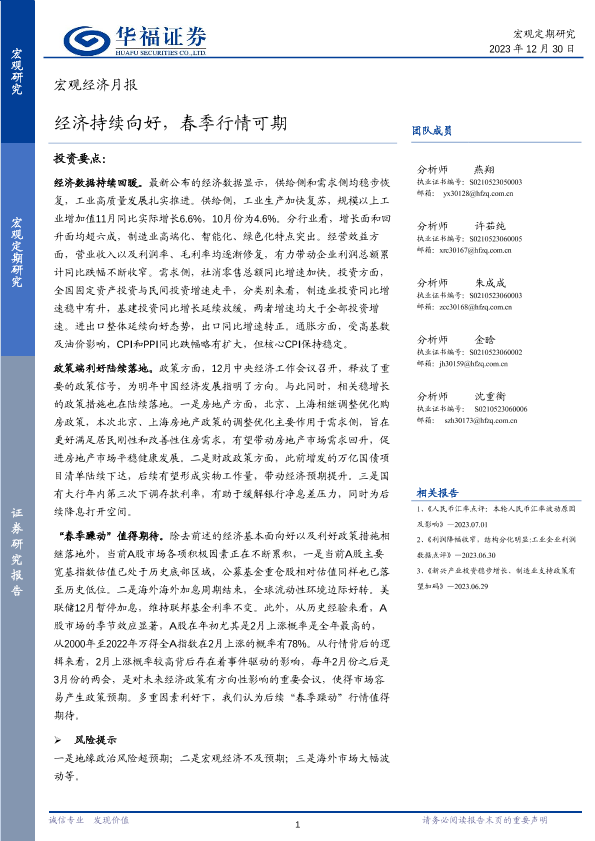 【华福证券】【20231230】宏观经济月报:经济持续向好,春季行情可期-12页