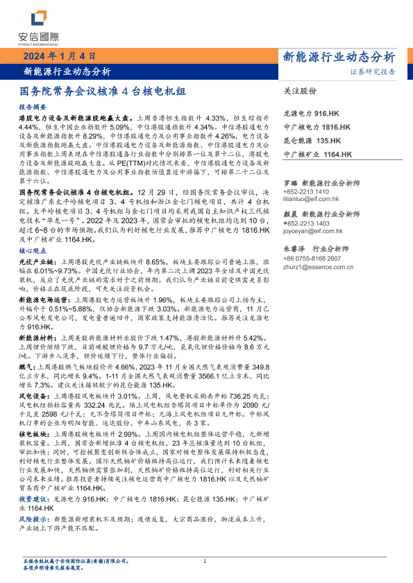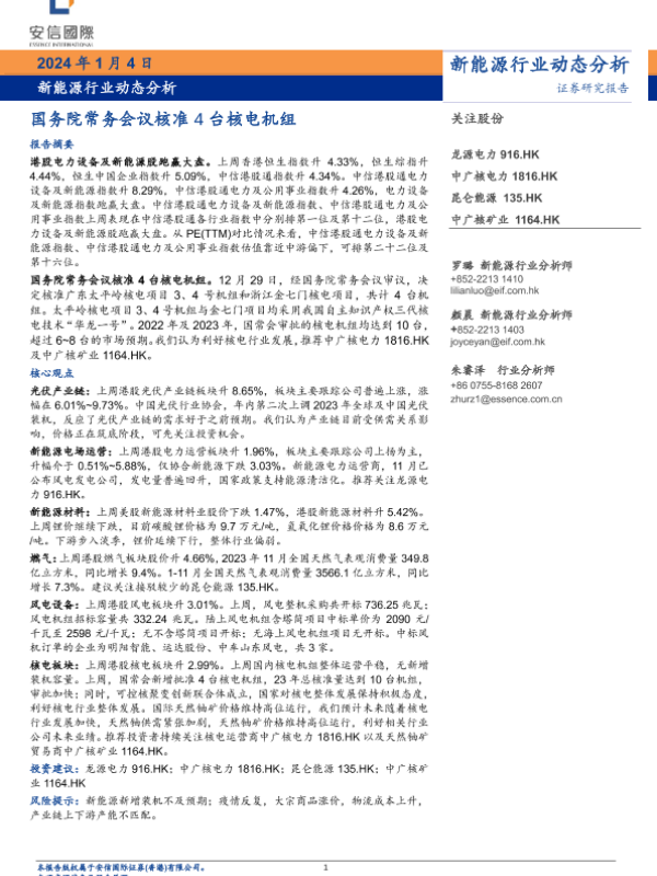 【国证国际】【20240104】新能源行业动态分析:国务院常务会议核准4台核电机组-13页