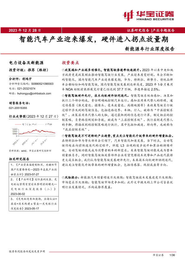 【华宝证券】【20231228】新能源车行业深度报告:智能汽车产业迎来爆发,硬件进入拐点放量期-36页