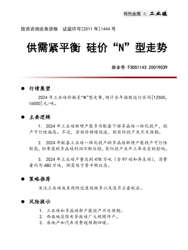 【中财期货】【20231229】有色金属之工业硅:供需紧平衡 硅价“N”型走势-16页