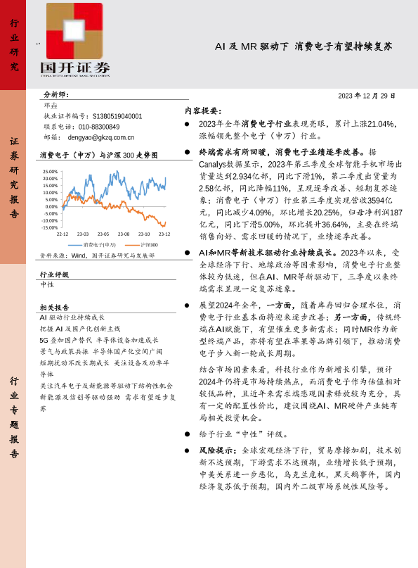 【国开证券】【20231229】AI及MR驱动下消费电子有望持续复苏-22页