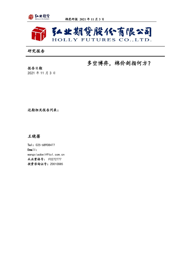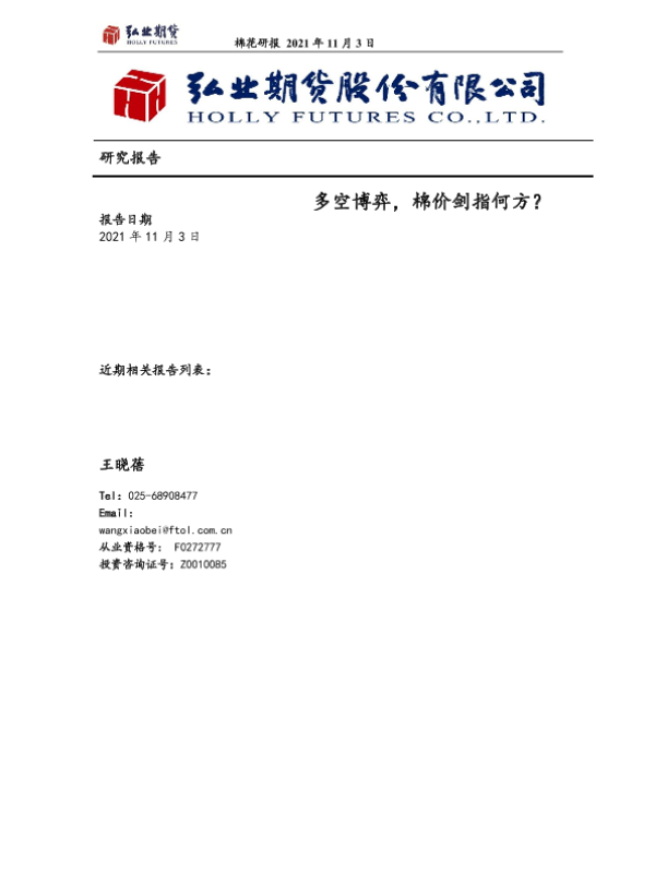 【弘业期货】【20211103】棉花研报:多空博弈,棉价剑指何方?-18页