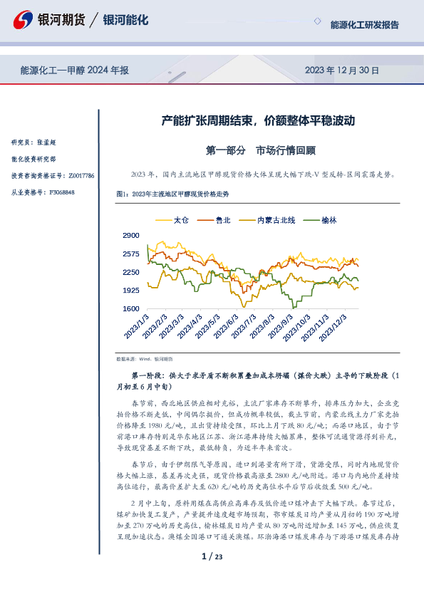 【银河期货】【20231230】甲醇2024年报:产能扩张周期结束,价额整体平稳波动-23页
