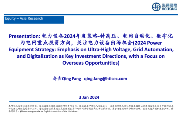 【海通国际】【20240103】电力设备2024年度策略:特高压、电网自动化、数字化为电网重点投资方向,关注电力设备出海机会-39页