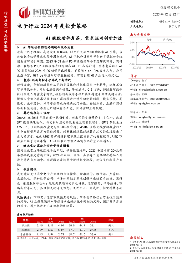 【国联证券】【20231222】电子行业2024年度投资策略:AI赋能硬件复苏,需求驱动创新加速-51页