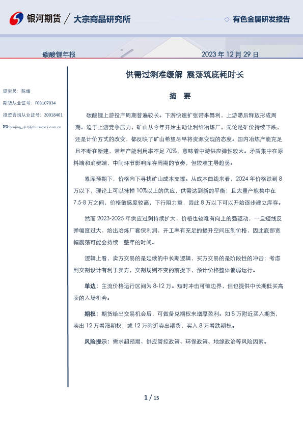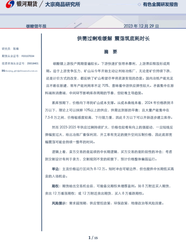 【银河期货】【20231229】碳酸锂年报:供需过剩难缓解 震荡筑底耗时长-15页