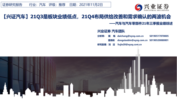 【兴业证券】【20211102】汽车与汽车零部件行业21年三季报业绩综述:21Q3是板块业绩低点,21Q4布局供给改善和需求确认的两波机会-33页