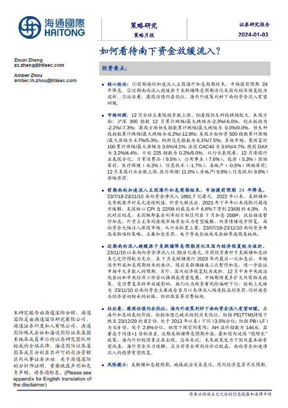 【海通国际】【20240103】策略月报:如何看待南下资金放缓流入?-15页