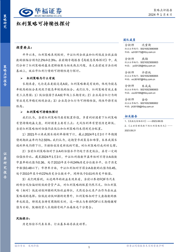【华福证券】【20240104】策略点评报告:红利策略可持续性探讨-15页