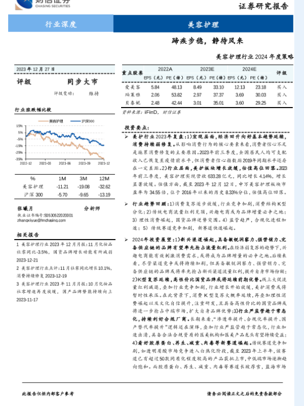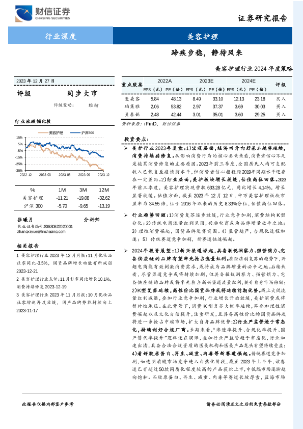 【财信证券】【20231227】美容护理行业2024年度策略:蹄疾步稳,静待风来-21页