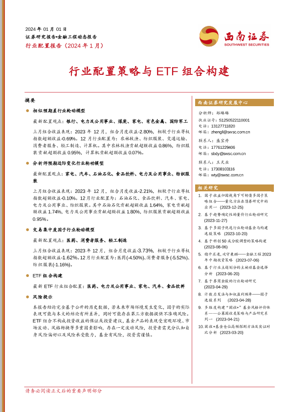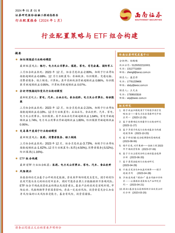 【西南证券】【20240101】行业配置报告(2024年1月):行业配置策略与ETF组合构建-16页