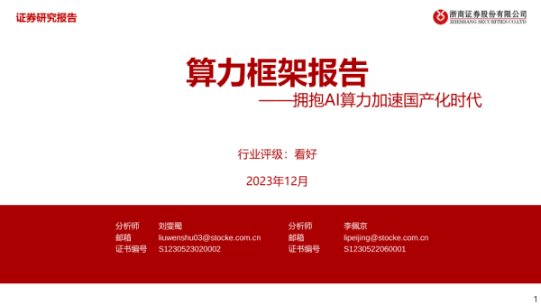 【浙商证券】【202312】计算机行业算力框架报告:拥抱AI算力加速国产化时代-41页