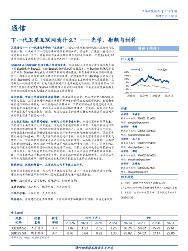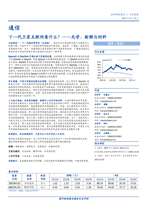 【国盛证券】【20240103】通信行业策略:下一代卫星互联网看什么?——光学、射频与材料-27页