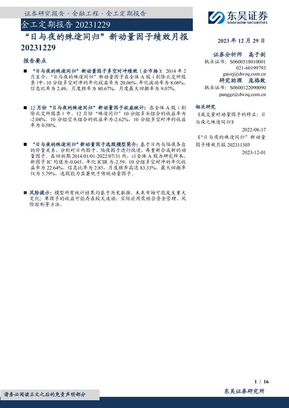 【东吴证券】【20231229】“日与夜的殊途同归”新动量因子绩效月报-16页