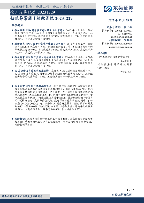 【东吴证券】【20231229】金工定期报告:估值异常因子绩效月报-17页