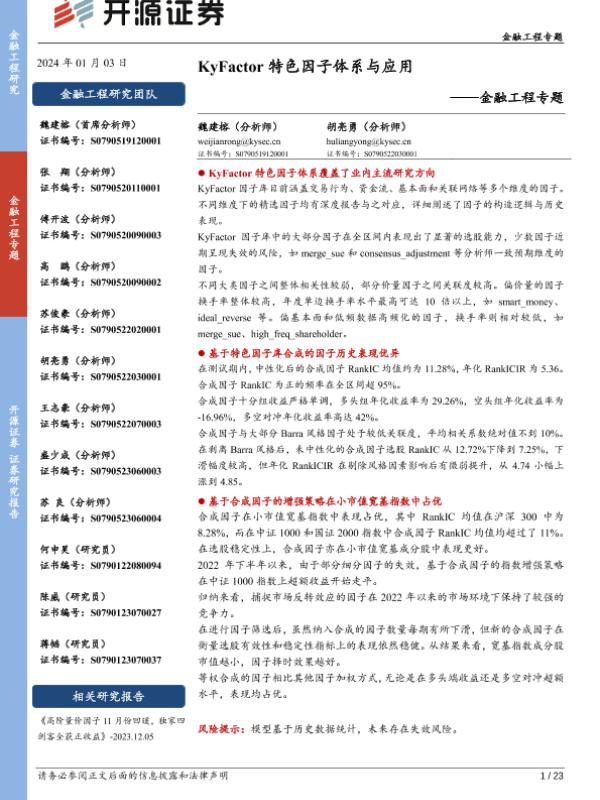 【开源证券】【20240103】金融工程专题:KyFactor特色因子体系与应用-23页