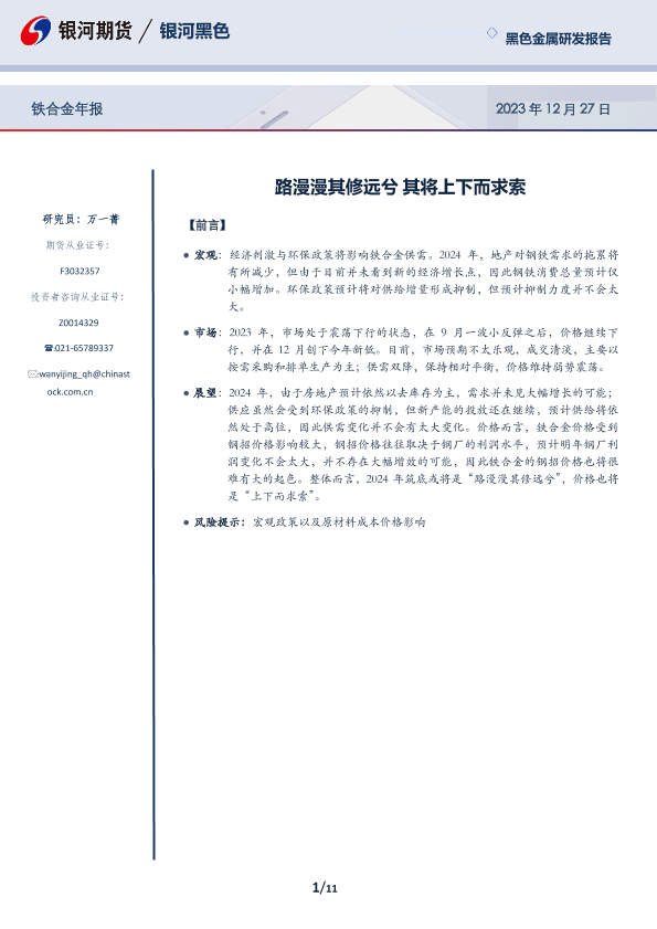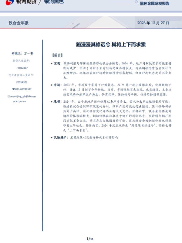 【银河期货】【20231227】铁合金年报:路漫漫其修远兮 其将上下而求索-11页