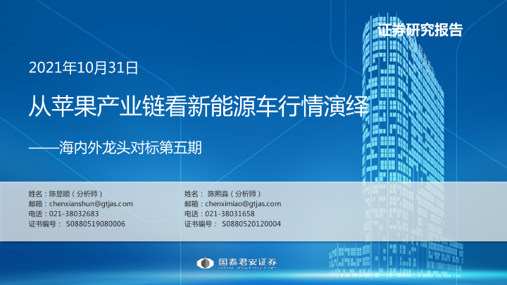 【国泰君安证券】【20211031】从苹果产业链看新能源车行情演绎-27页