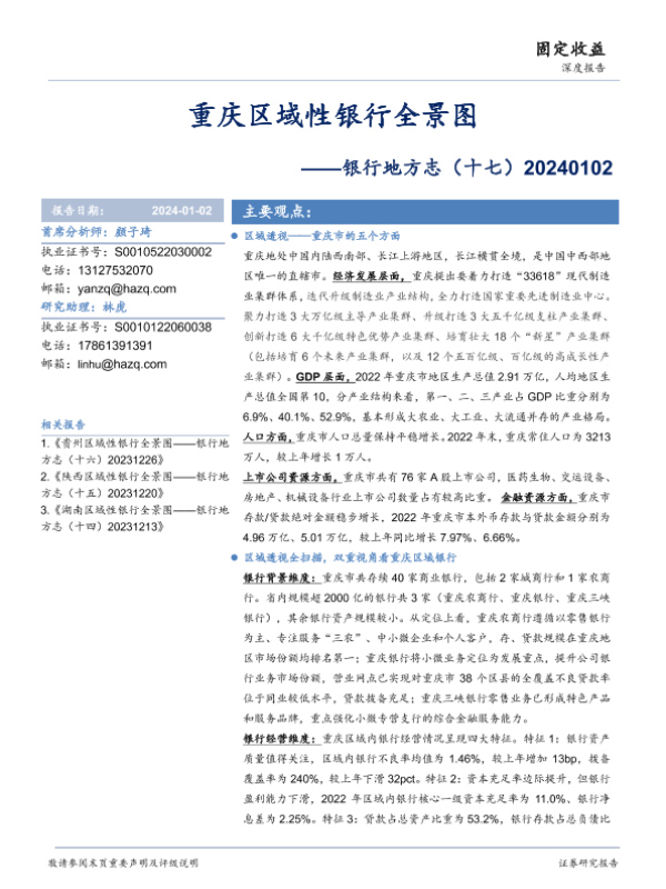 【华安证券】【20240102】银行地方志(十七):重庆区域性银行全景图-27页