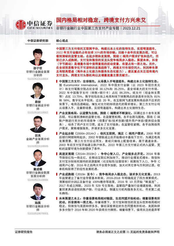 【中信证券】【20231221】非银行金融行业中国第三方支付产业专题:国内格局相对稳定,跨境支付方兴未艾-31页