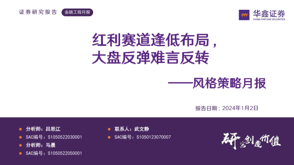 【华鑫证券】【20240102】风格策略月报:红利赛道逢低布局,大盘反弹难言反转-24页