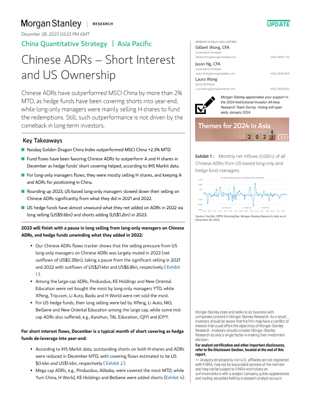 【Morgan Stanley】【20231228】中国ADR市场表现及美国投资者持有情况分析-14页