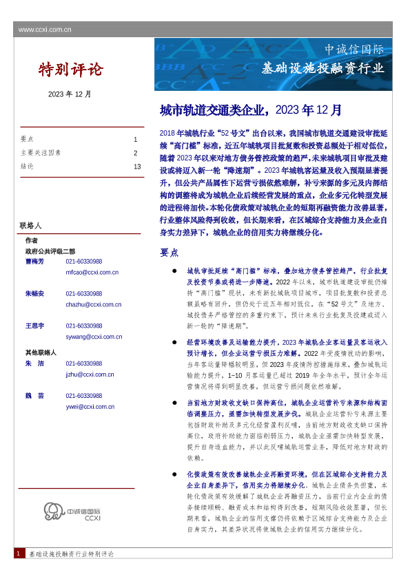 【中诚信国际】【202312】城市轨道交通行业特别评论-14页