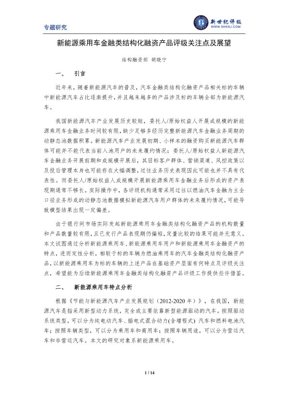 【结构融资部胡晓宁】【2023】新能源乘用车金融类结构化融资产品评级关注点及展望-14页