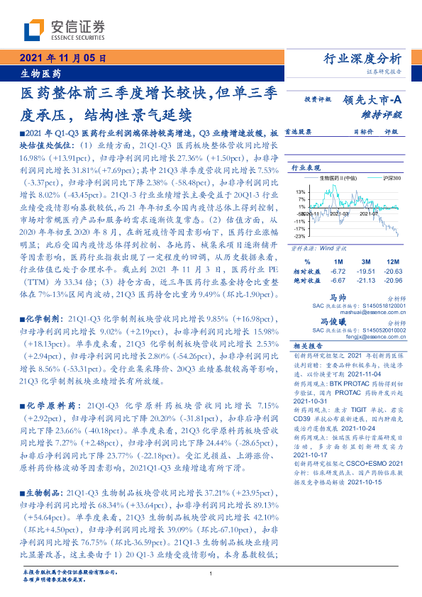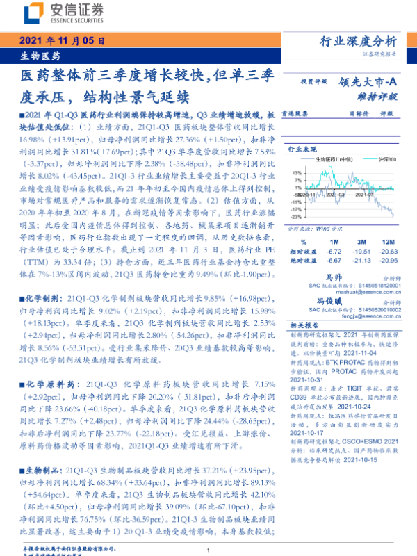 【安信证券】【20211105】生物医药行业:医药整体前三季度增长较快,但单三季度承压,结构性景气延续-27页