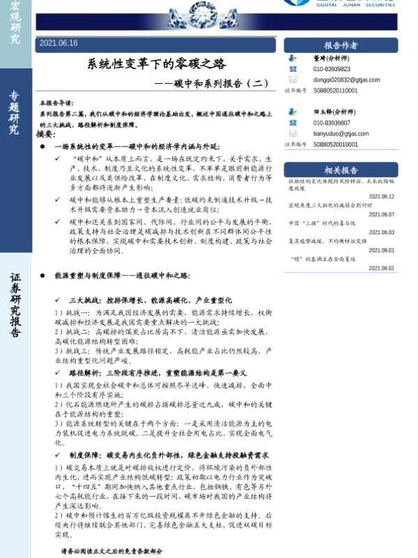 【国泰君安证券】【20210616】系统性变革下的零碳之路——碳中和系列报告(二)-15页