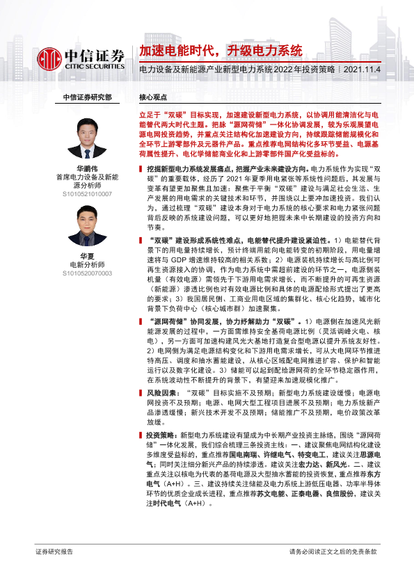 【中信证券】【20211104】电力设备及新能源行业产业新型电力系统2022年投资策略:加速电能时代,升级电力系统-33页