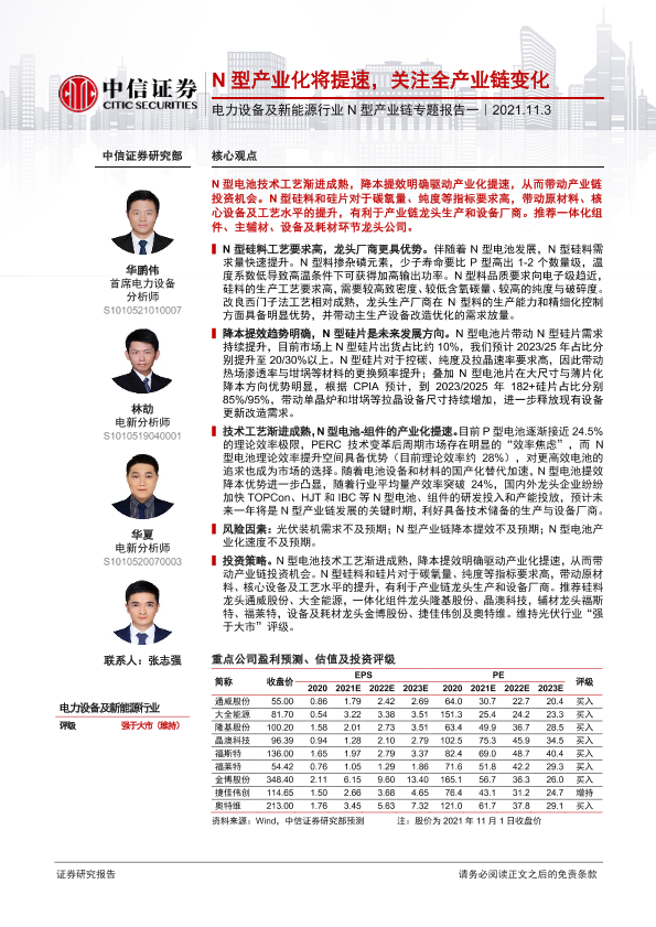 【中信证券】【20211103】电力设备及新能源行业N型产业链专题报告一:N型产业化将提速,关注全产业链变化-18页