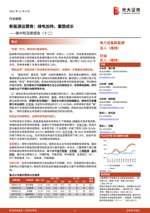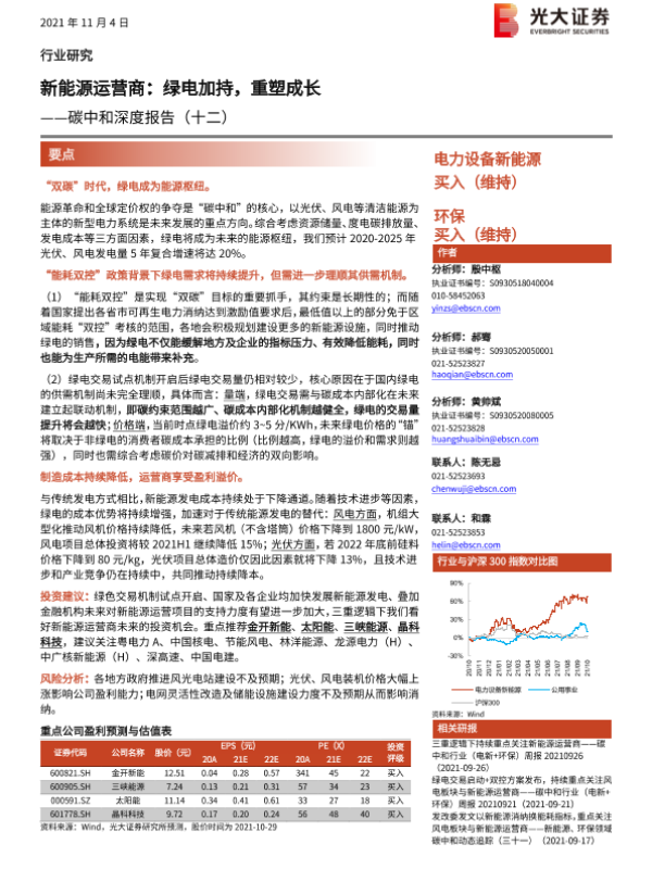 【光大证券】【20211104】电力设备新能源、环保行业碳中和深度报告(十二):新能源运营商,绿电加持,重塑成长-35页