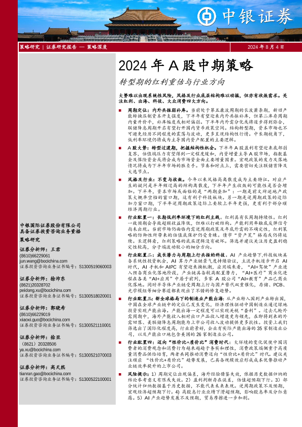 【中银证券】【20240804】2024年A股中期策略:转型期的红利重估与行业方向-39页