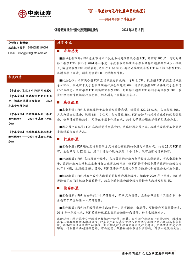 【中泰证券】【20240806】2024年FOF二季报分析:FOF二季度如何进行权益和固收配置?-19页
