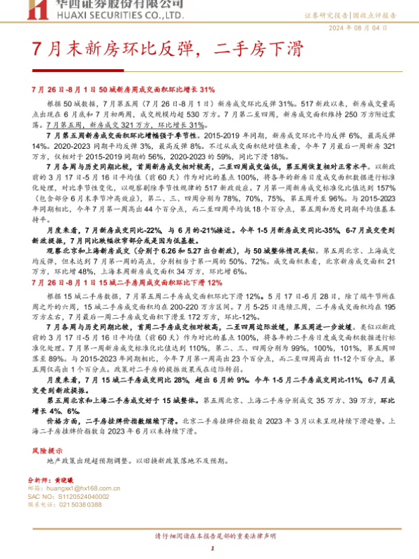 【华西证券】【20240804】7月末新房环比反弹,二手房下滑-12页