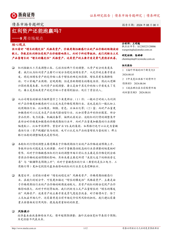 【浙商证券】【20240806】8月市场观点:红利资产还能跑赢吗?-12页