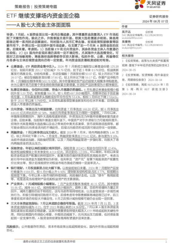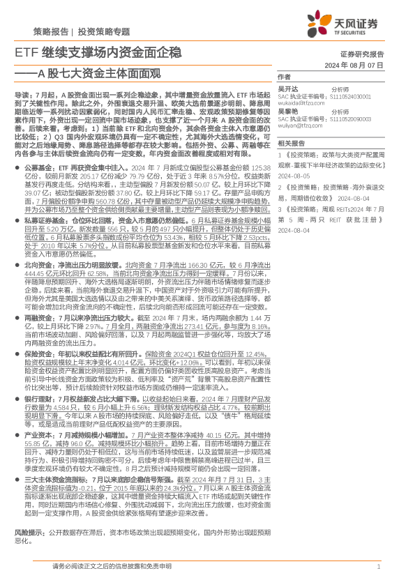 【天风证券】【20240807】A股七大资金主体面面观:ETF继续支撑场内资金面企稳-20页