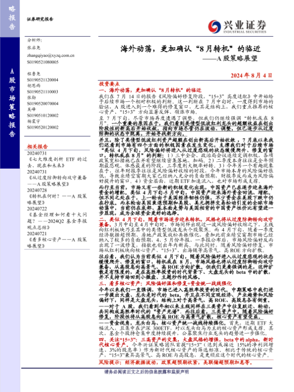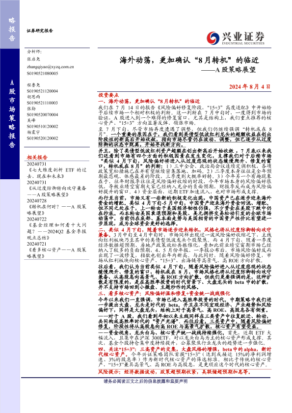 【兴业证券】【20240804】海外动荡,更加确认“8月转机”的临近——A股策略展望-12页