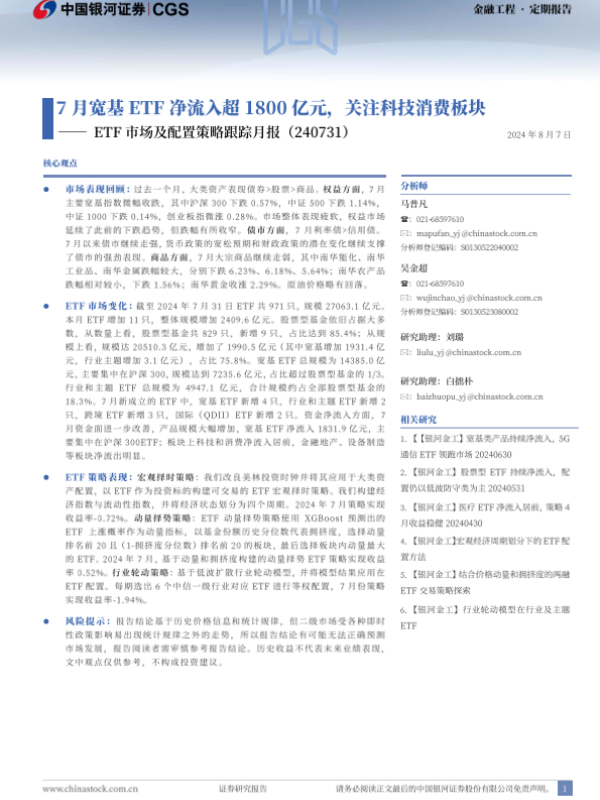 【银河证券】【20240807】ETF市场及配置策略跟踪月报:7月宽基ETF净流入超1800亿元,关注科技消费板块-19页