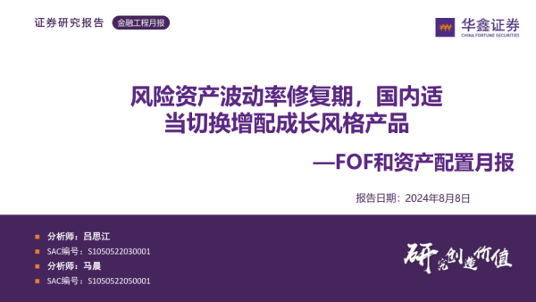 【华鑫证券】【20240808】FOF和资产配置月报:风险资产波动率修复期,国内适当切换增配成长风格产品-23页