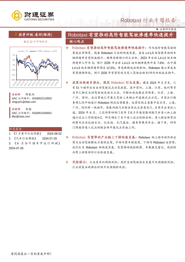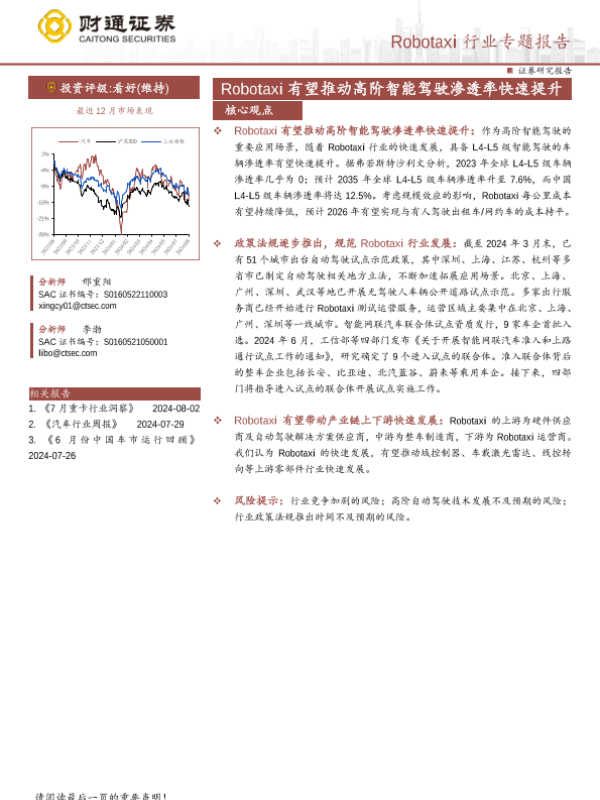 【财通证券】【20240806】Robotaxi行业专题报告:Robotaxi有望推动高阶智能驾驶渗透率快速提升-15页