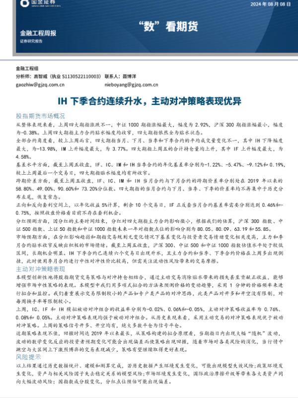 【国金证券】【20240808】“数”看期货:IH下季合约连续升水,主动对冲策略表现优异-12页