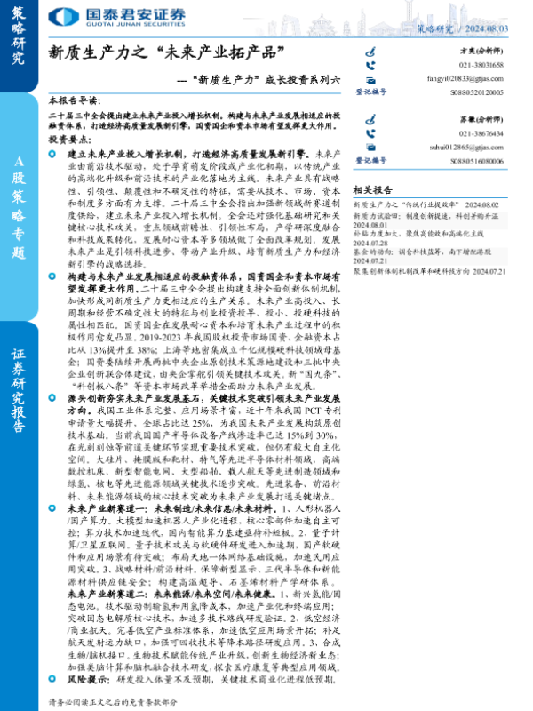 【国泰君安证券】【20240803】新质生产力之“未来产业拓产品”-59页
