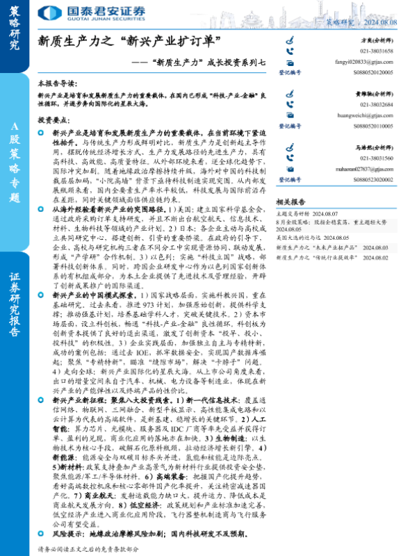 【国泰君安证券】【20240808】新质生产力之“新兴产业扩订单”-37页